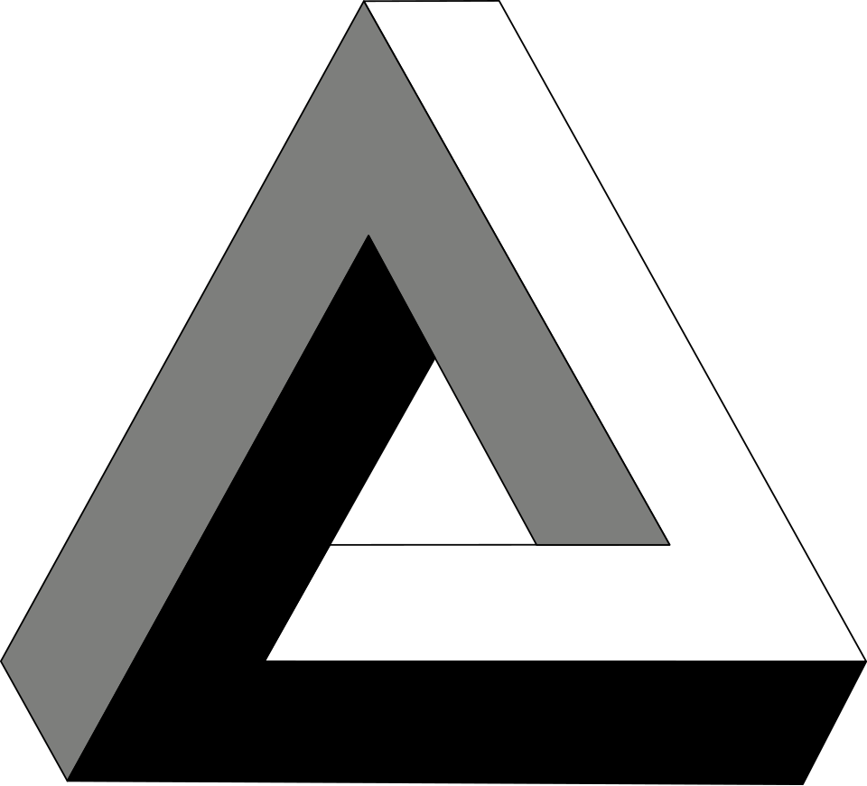 Another famous illusion involves the so-called impossible triangle, also called the Penrose triangle. It looks like a solid object. However, once you examine it carefully, the geometry makes no physical sense. The angles contradict each other in ways that cannot exist in real three-dimensional space. Still, the brain attempts to interpret it as a real object.